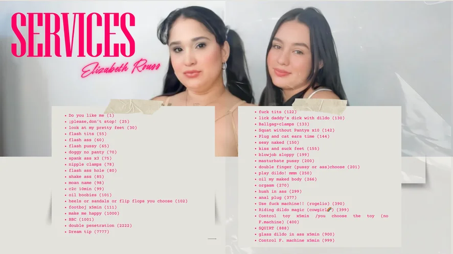 Doggy Style, Ahegao, Spanking, Erotic Dance, Fingering, Dildo or Vibrator, Cumshot, Striptease, Smoking, Sex Toys, Masturbation, Twerk, Cowgirl, Topless, Oil Show, Humiliation, Blowjob, Orgasm, Deepthroat, Nipple Toys, Strapon, Pegging